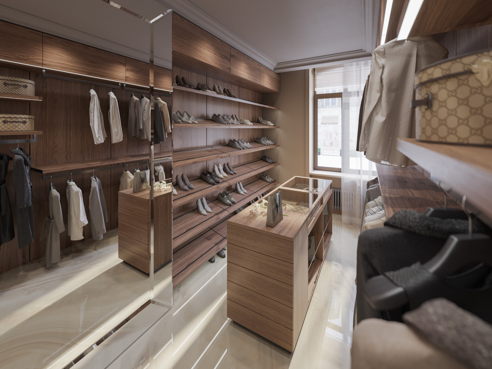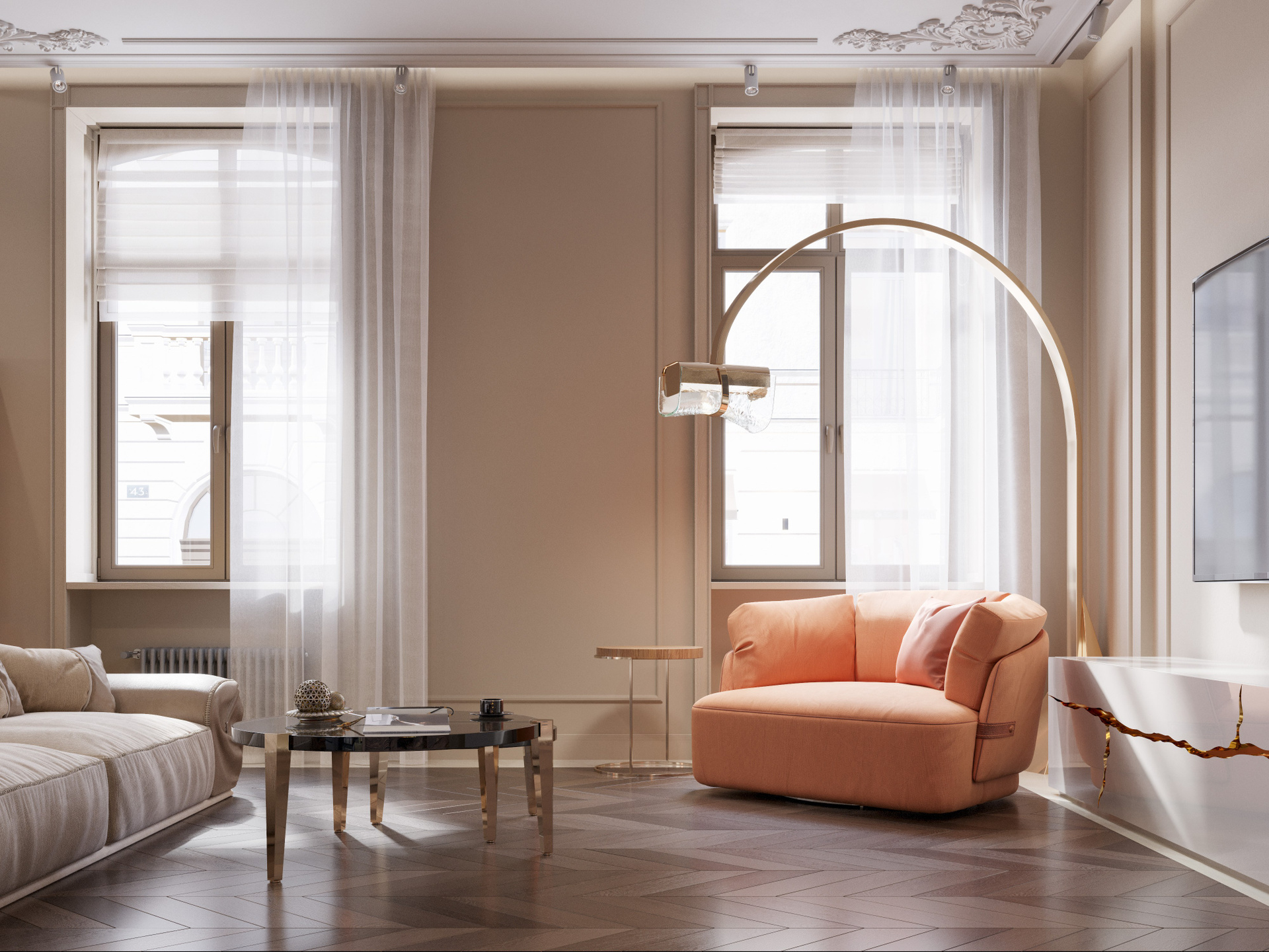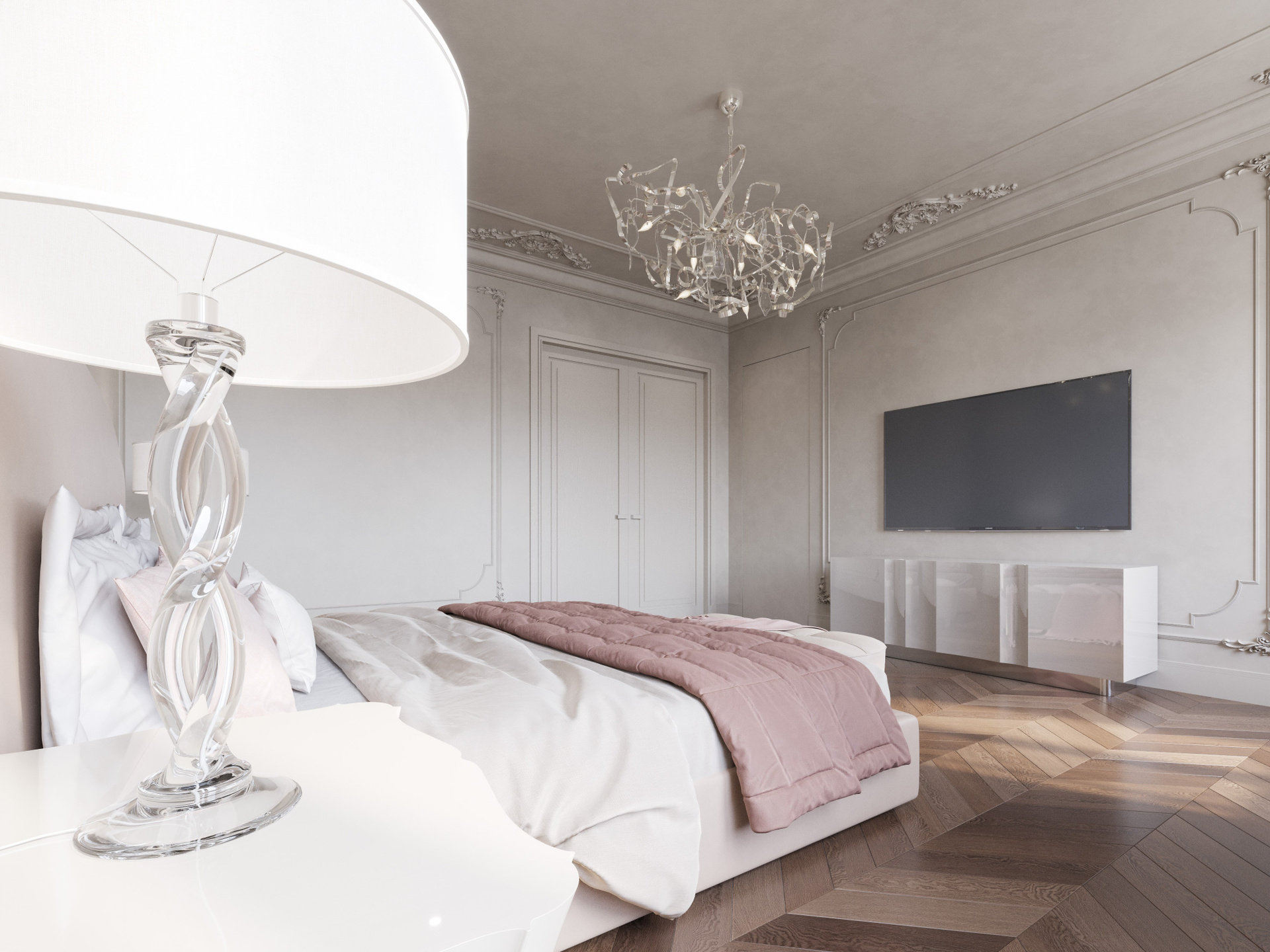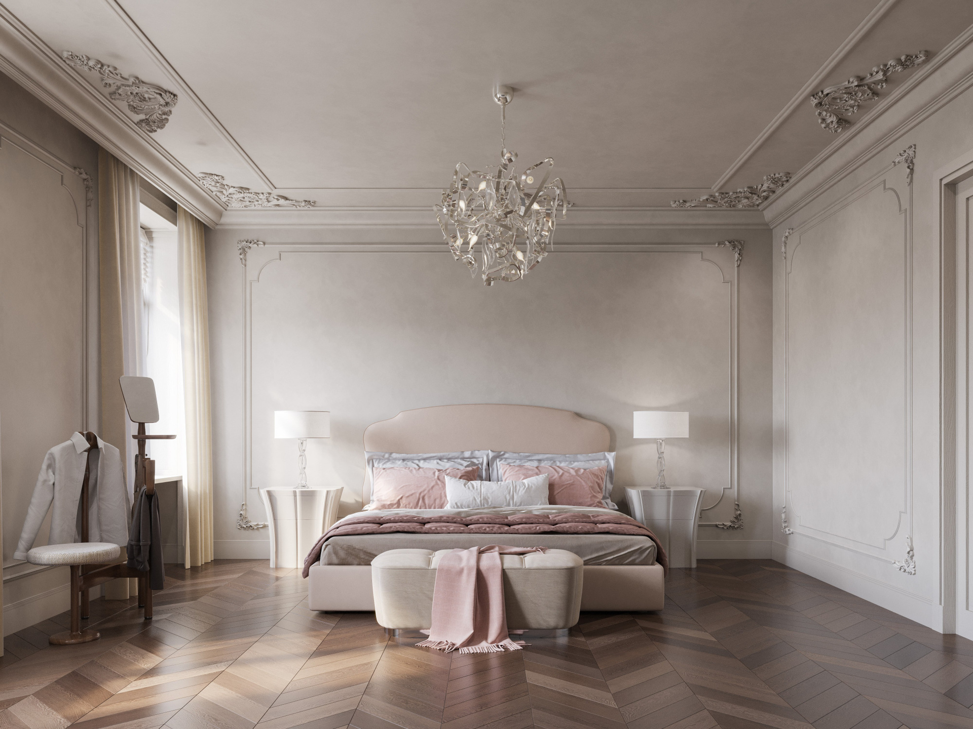 Этот проект — выразительная фотореалистичная 3D визуализация интерьера, где комбинация классических деталей и современных материалов создаёт утончённую атмосферу. Светлые пространства, изящная лепнина, смелые цветовые акценты и индивидуальные решения подчеркивают характер квартиры. Детальная работа позволяет оценить глубину композиции и профессиональный подход к дизайну.